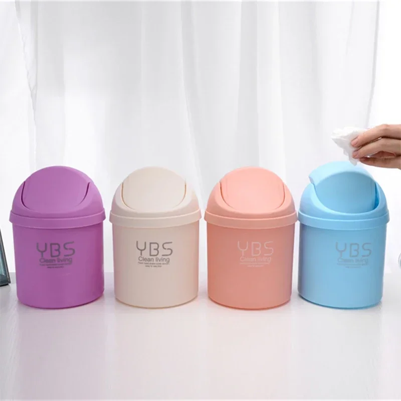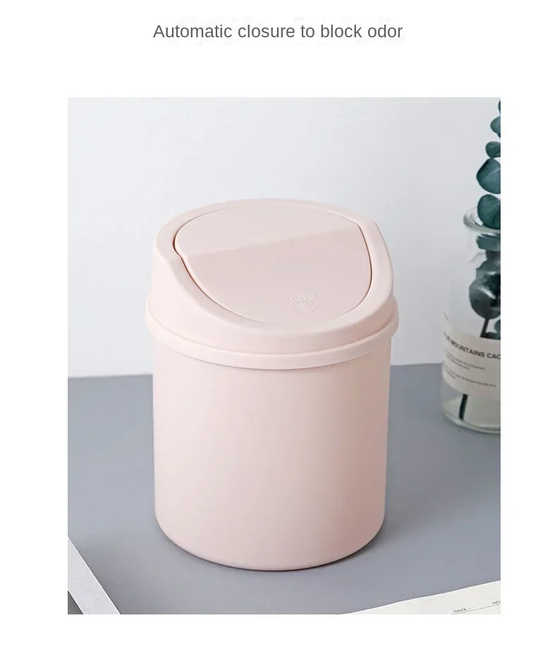 Mini Desktop Bin Small Trash Can Tube with Cover Bedroom Trash Garbage Can Clean Workspace Kitchen Storage Box Home Desk Dustbin