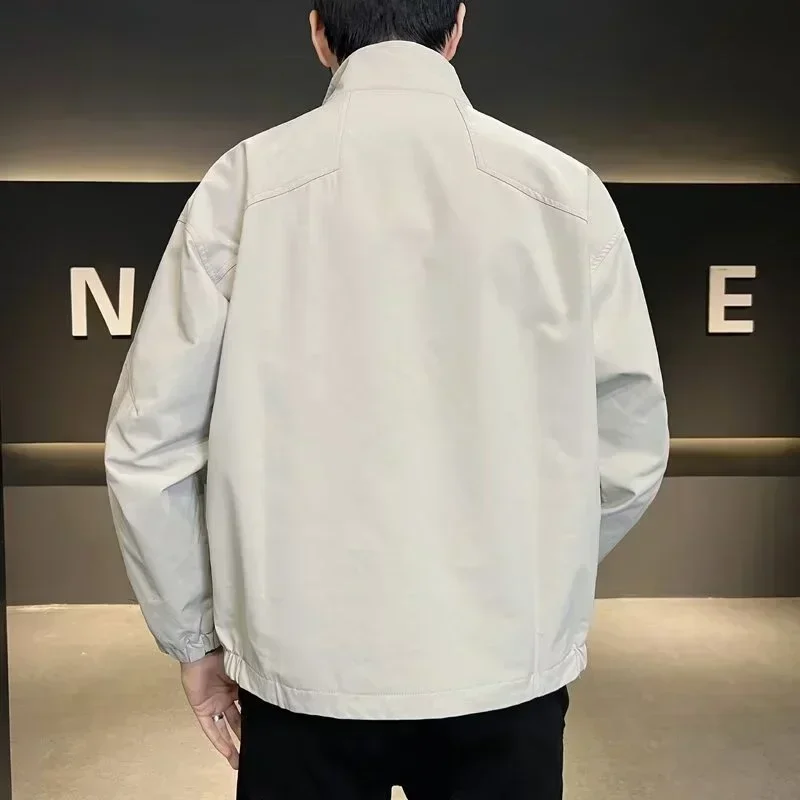 Spring Korean Fashion Cropped Jackets For Men 2025 New Solid Color Stand Collar Bomber Jacket Business Casual Cargo veste homme