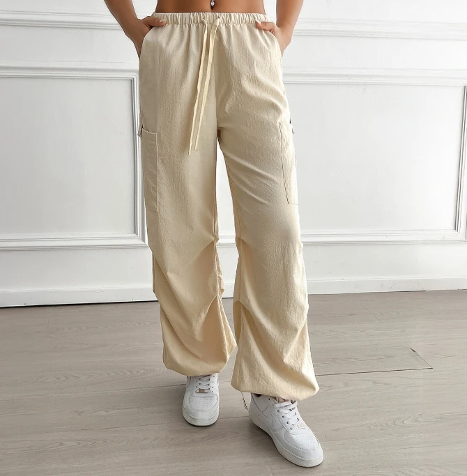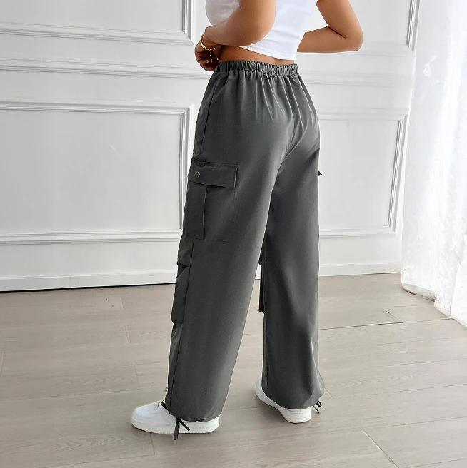 Trendy American Women’s Pants Casual Street Style Loose Quick Drying Cargo Pants Lace Up Pocket Workwear Tapered Wide Leg Pants
